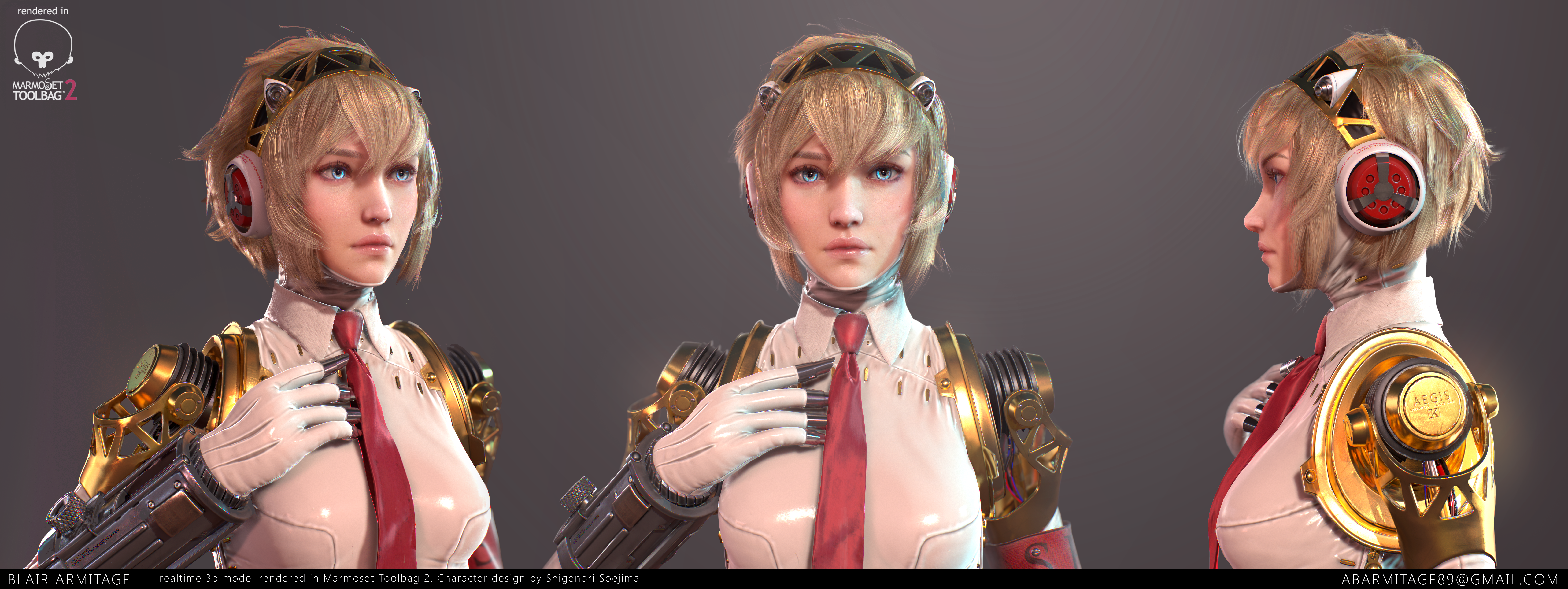 Realtime character rendered in Marmoset Toolbag 2. Character design by Shigenori Soejima.